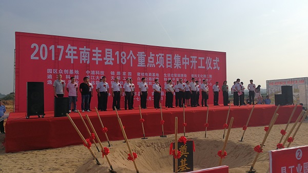 為進(jìn)一步營造濃厚的項(xiàng)目建設(shè)氛圍,推動縣域經(jīng)濟(jì)趕超發(fā)展,2017年8月20日上午8:28,南豐縣18個重點(diǎn)項(xiàng)目集中開工儀式在黃金工業(yè)園區(qū)舉行。撫州市副市長徐國義出席儀式并講話;縣委書記吳自勝宣布開工并講話;縣委副書記、縣長樂啟文致辭。隨后,南豐曠遠(yuǎn)能源有限公司、城區(qū)飲水工程和園區(qū)眾創(chuàng)基地的代表分別代表企業(yè)發(fā)言。