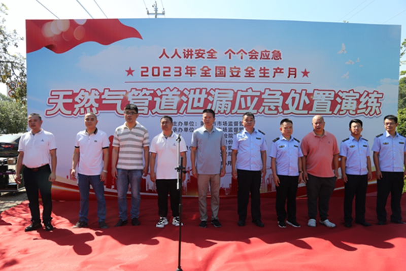 為進(jìn)一步提高應(yīng)對城鎮(zhèn)燃?xì)庑孤┑韧话l(fā)事件的應(yīng)急處置水平,6月28日上午,莆田市市場監(jiān)督管理局、荔城區(qū)城市管理行政執(zhí)法局、莆田市公安局荔城分局、荔城區(qū)市場監(jiān)督管理局、福建省特檢院莆田分院、曠遠(yuǎn)能源股份有限公司在荔城區(qū)新度鎮(zhèn)城港大道旁開展天然氣管道泄漏應(yīng)急處置演練。演練開始,模擬因施工單位挖破管道造成燃?xì)獯罅啃孤┕と藛T立即撥打2652111搶險電話,相關(guān)部門立即啟動天然氣管道泄漏應(yīng)急預(yù)案,搶險搶修組..